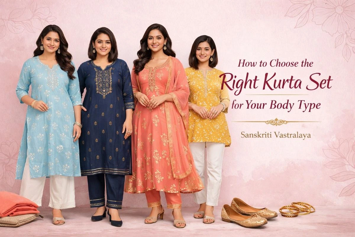 At Sanskriti Vastralaya, we believe ethnic wear should feel easy, comfortable, and made for real women. Here’s a simple guide to help you choose kurta sets that suit your body type and enhance your natural shape.