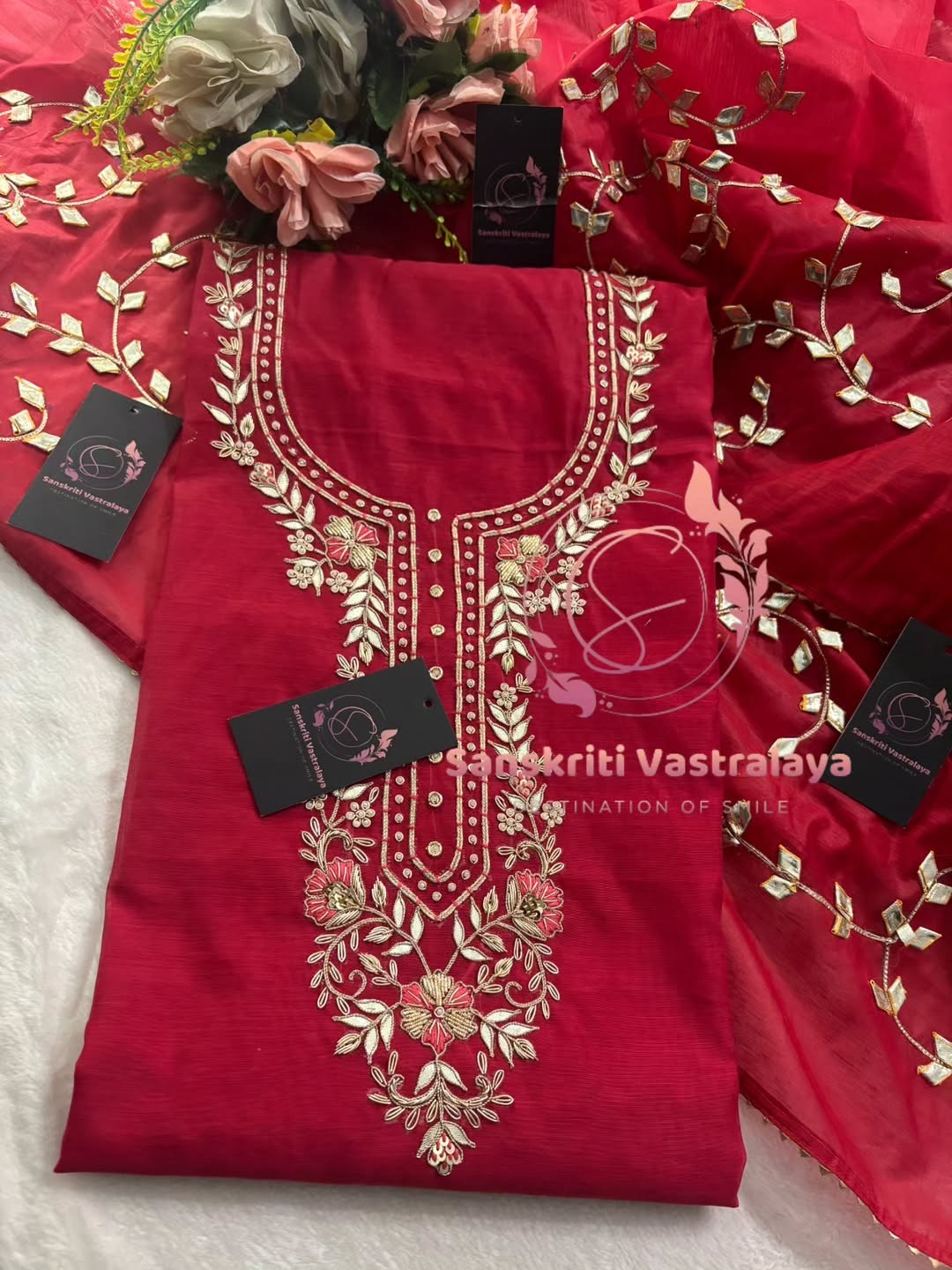 Chanderi fabric kurta with zardogi handwork