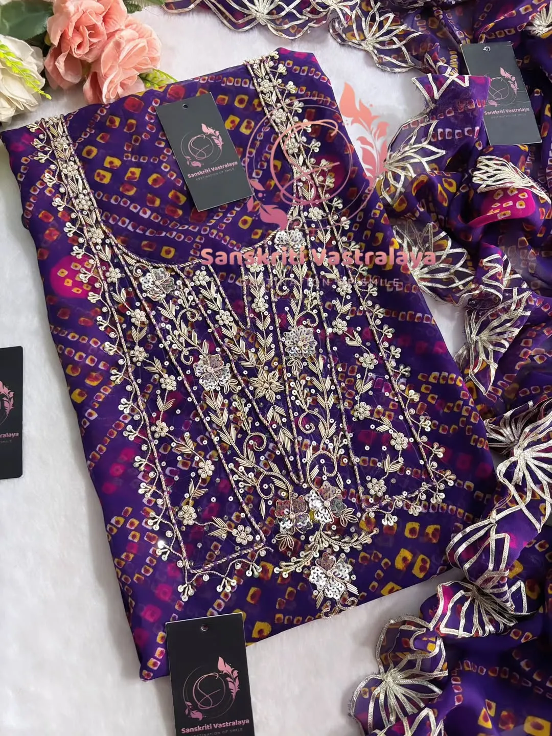 Georgette fabric kurta with zardogi handwork