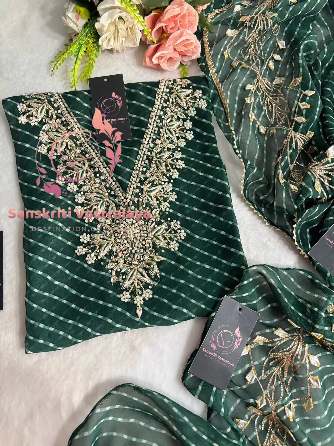 Georgette fabric kurta with zardogi handwork
