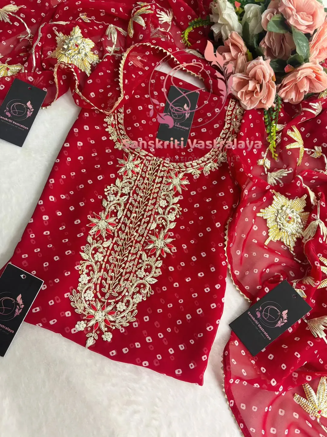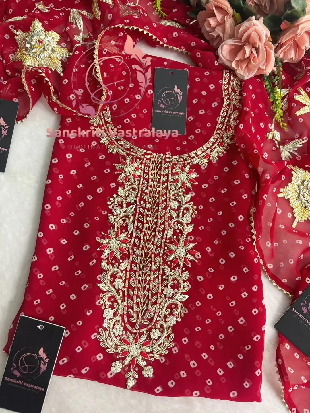 Georgette fabric kurta with zardoshi handwork