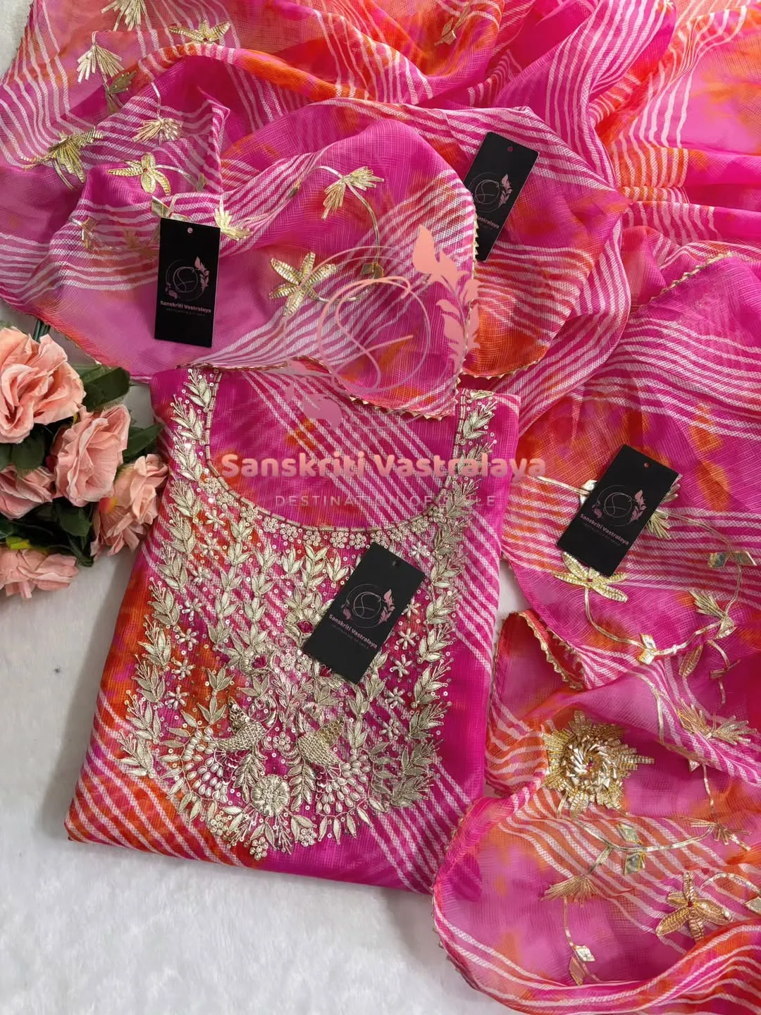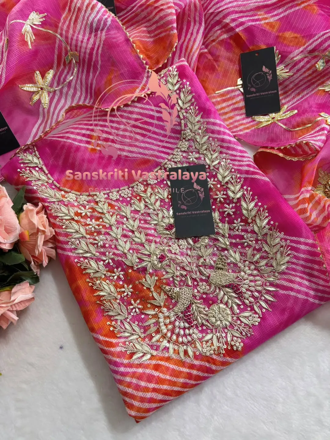Be the first to review “Kota Doria fabric kurta with zardogi handwork”