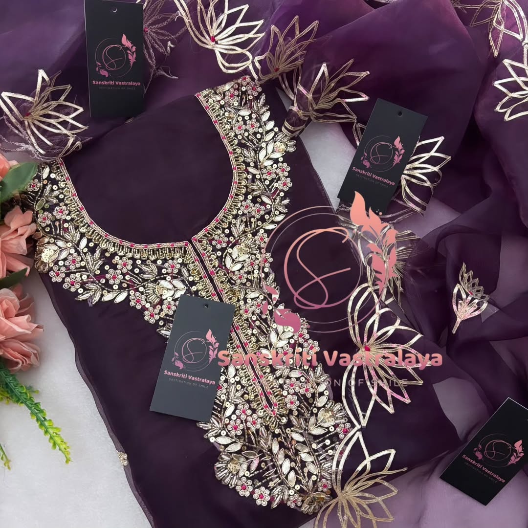 Organza fabric kurta with zardogi handwork