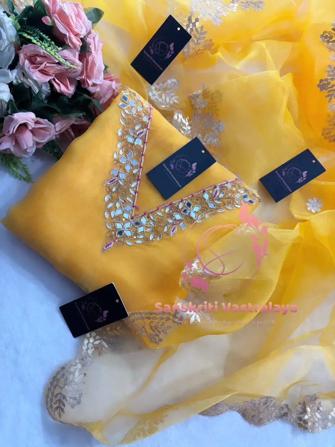 Organza fabric kurta with zardogi handwork