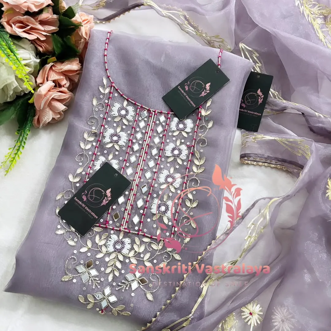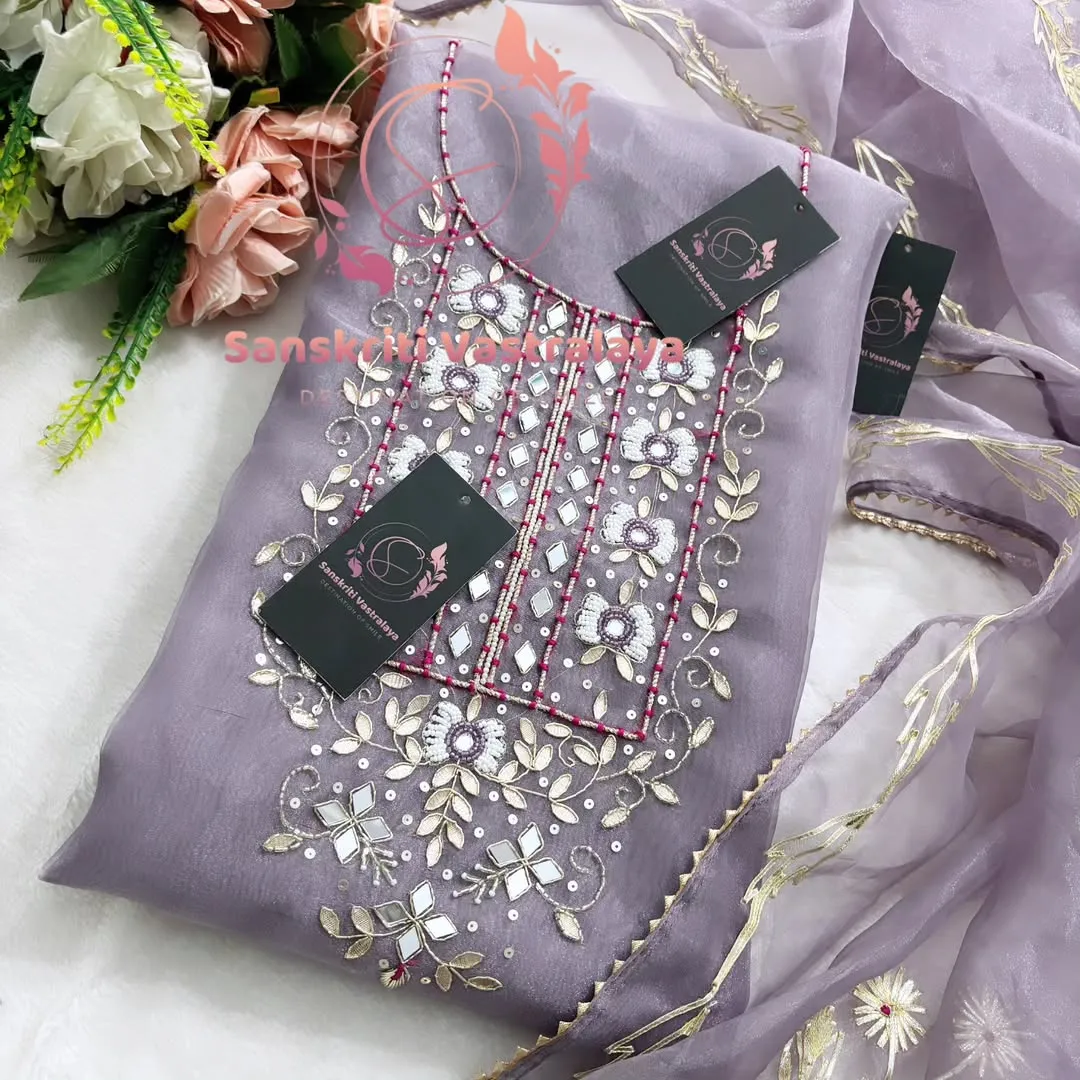 Tissue organza fabric kurta with mirror pearl handwork