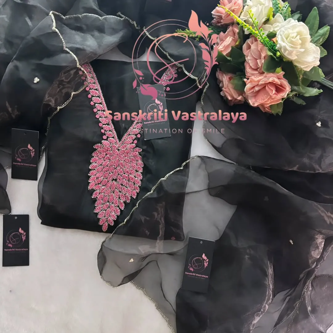 Tissue organza fabric kurta with pearl handworkTissue organza fabric kurta with pearl handwork