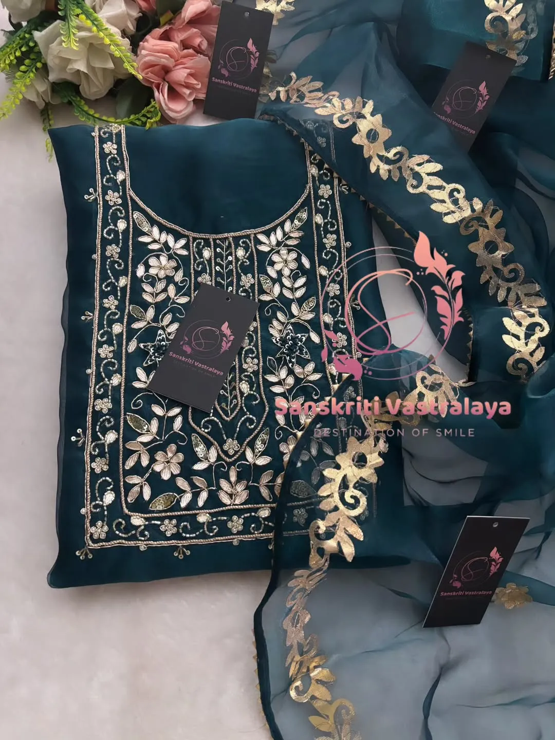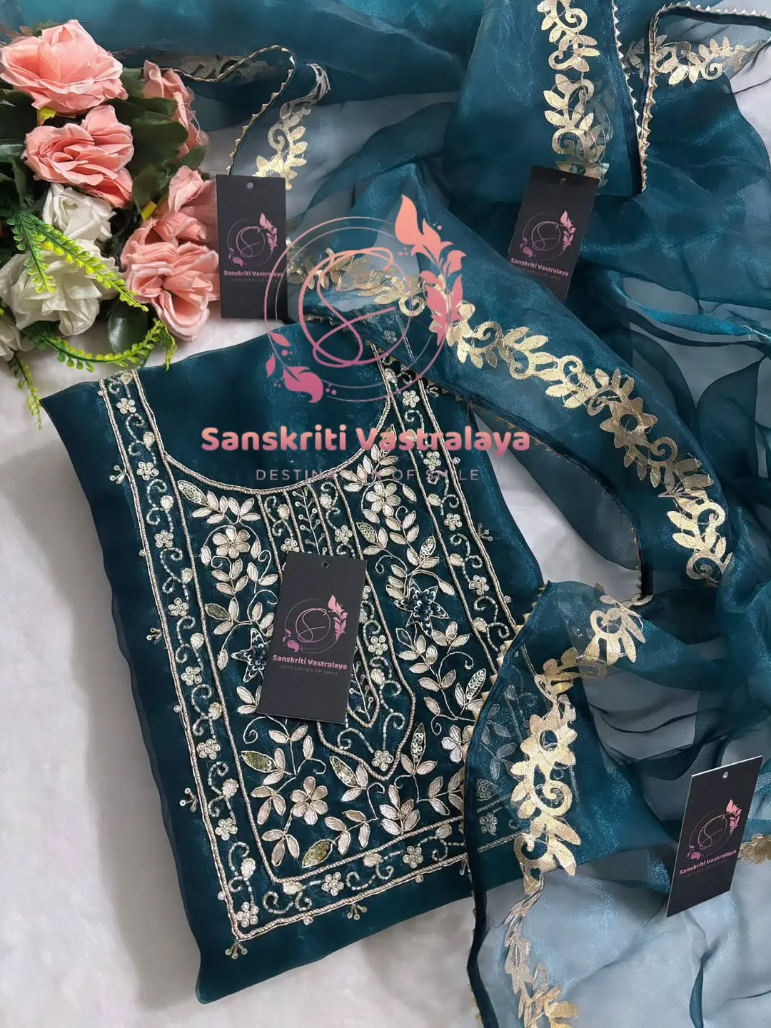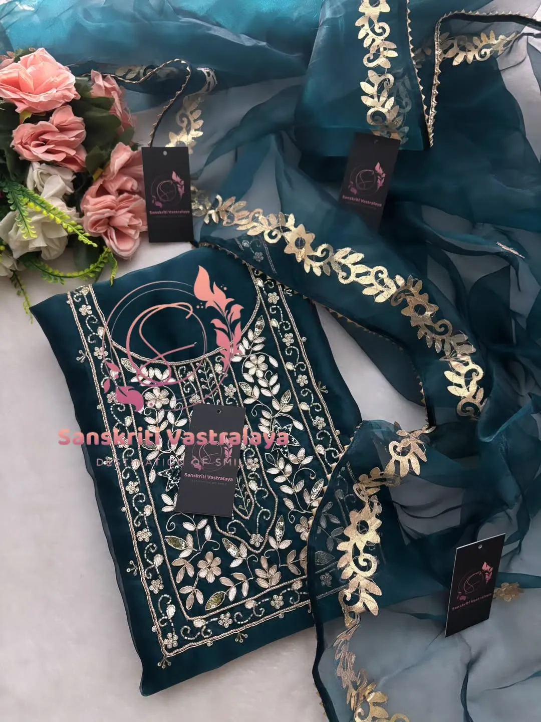 Tissue organza fabric kurta with zardogi handwork