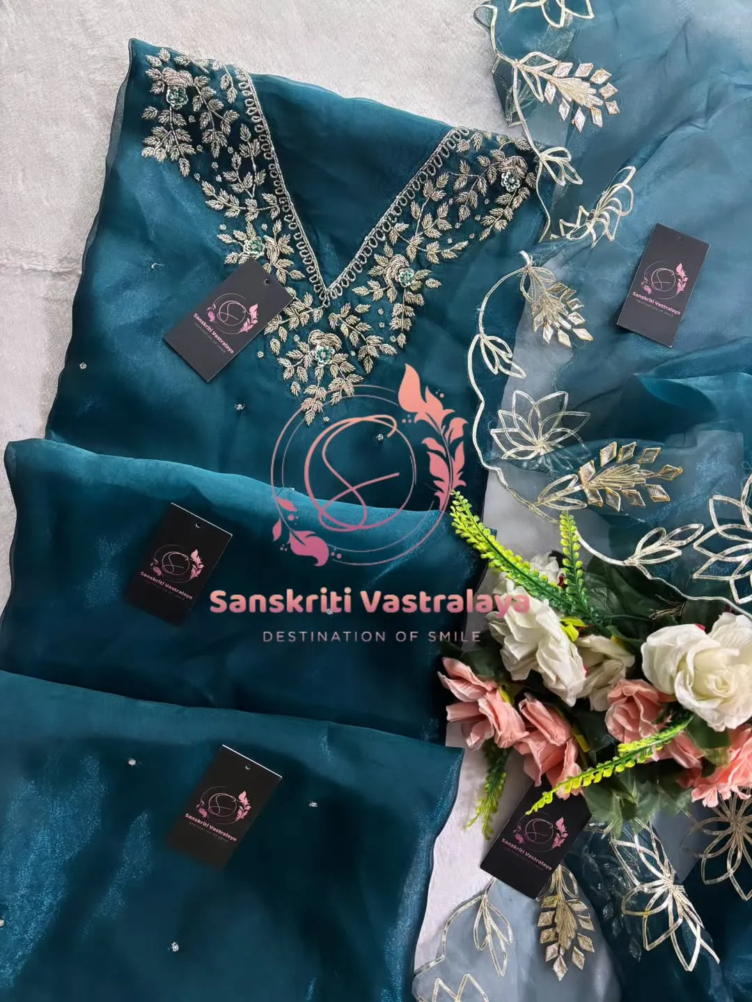 Tissue organza fabric kurta with zardogi handworkTissue organza fabric kurta with zardogi handwork