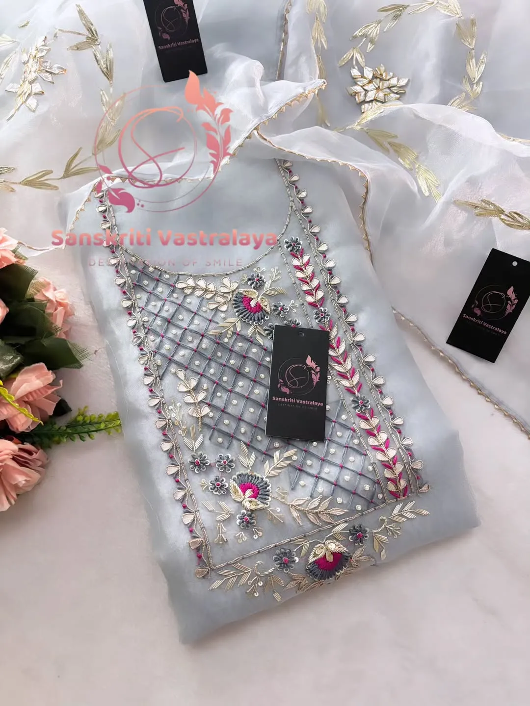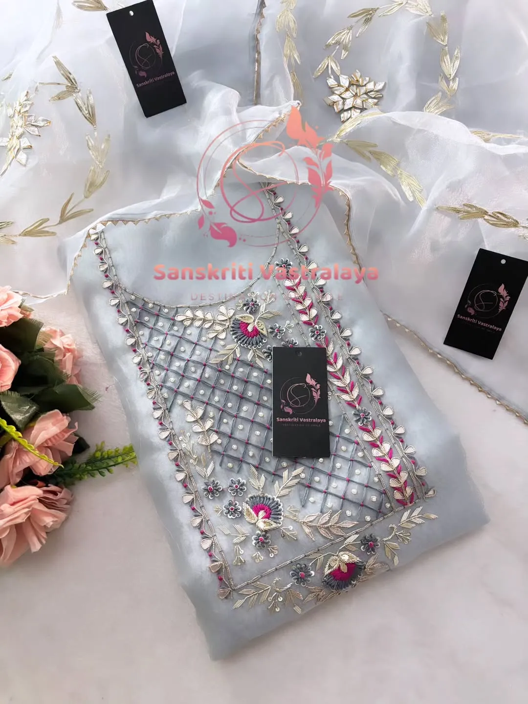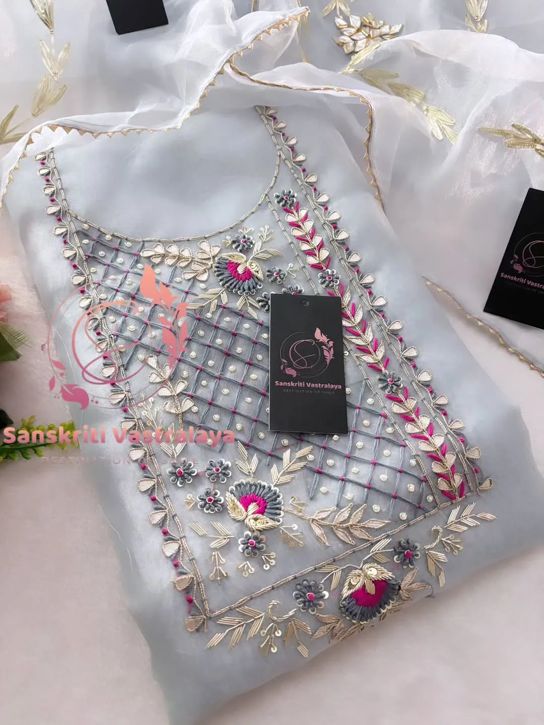 Be the first to review “Tissue organza fabric kurta with zardogi handwork”