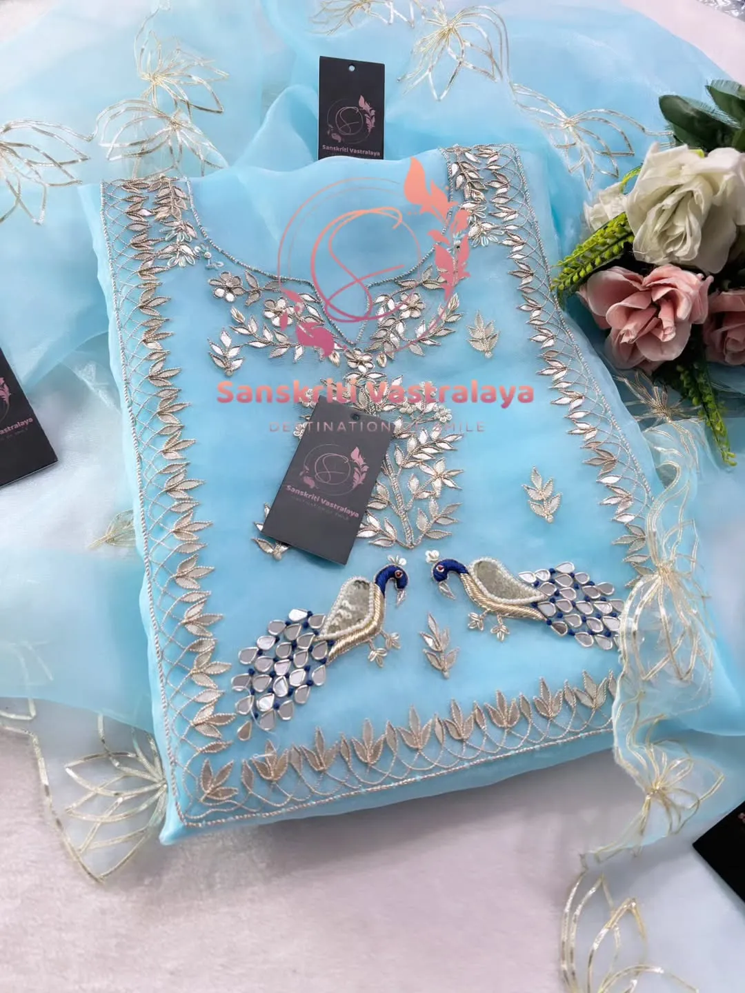 Tissue organza fabric kurta with zardogi handworkTissue organza fabric kurta with zardogi handwork