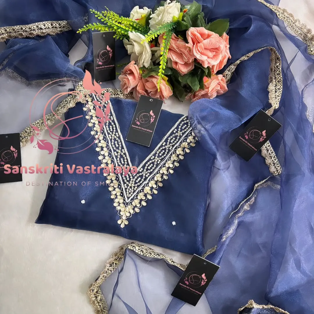 Tissue organza fabric kurta with zardogi handwork