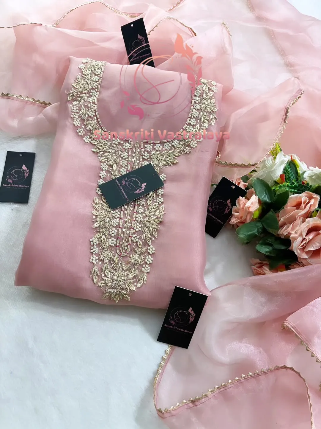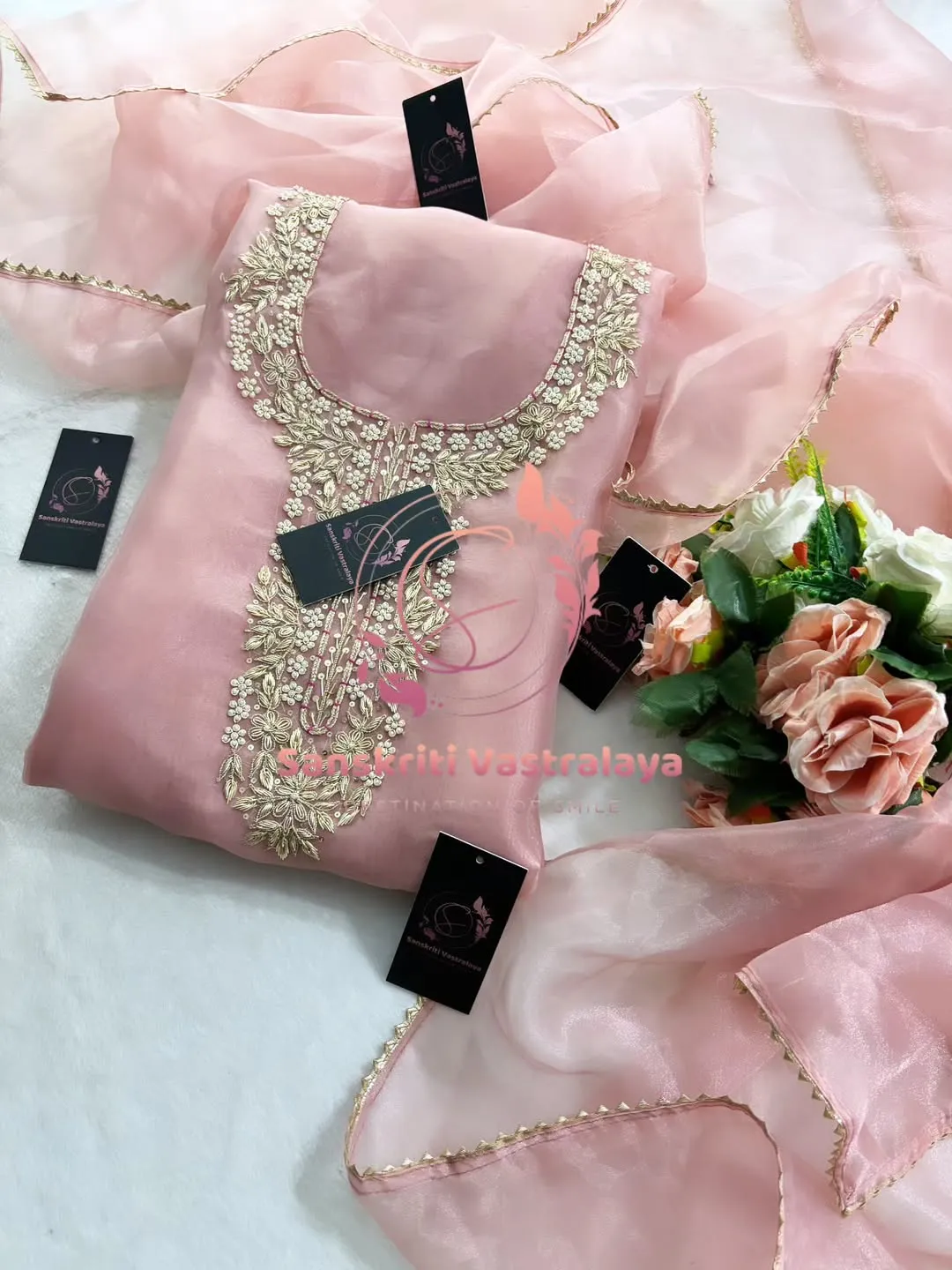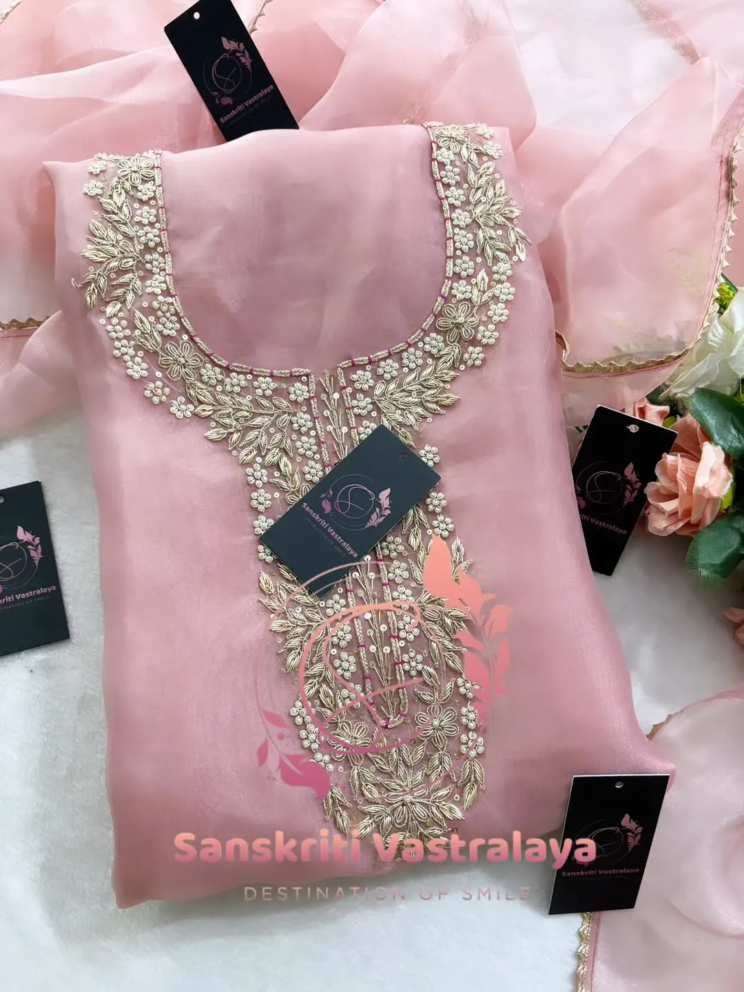 Tissue organza fabric kurta with zardozi handwork