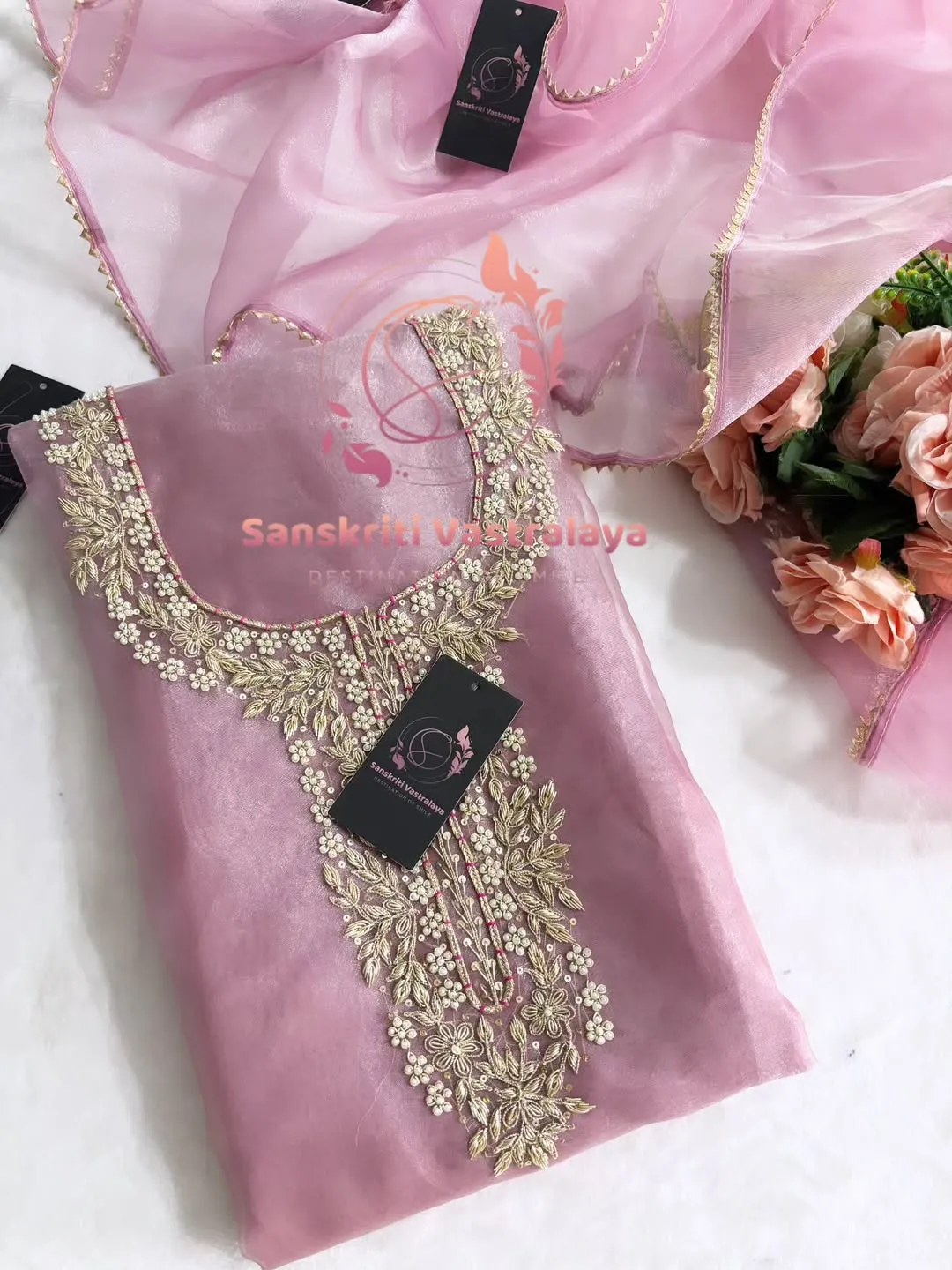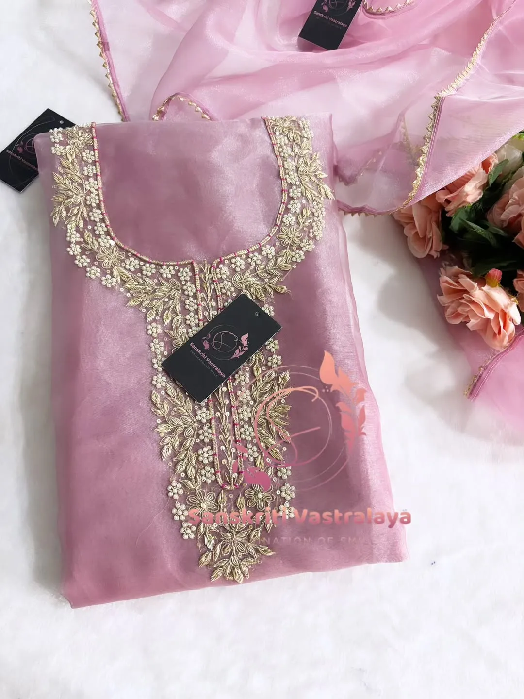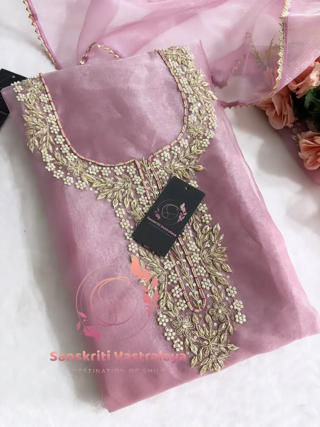 Tissue organza fabric kurta with zardozi handwork