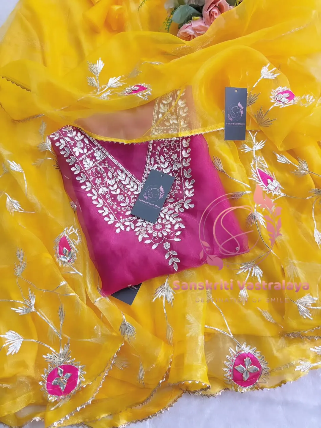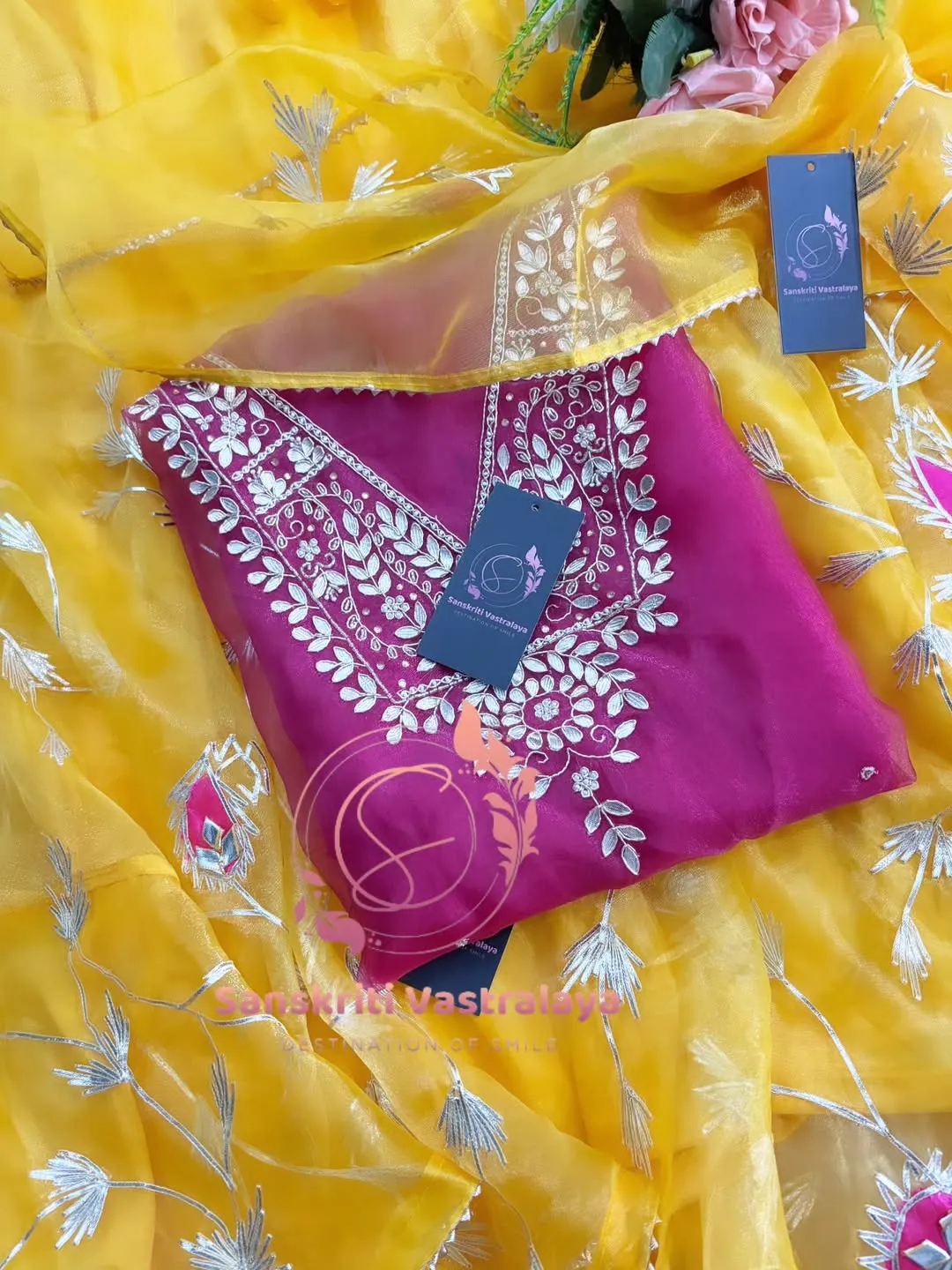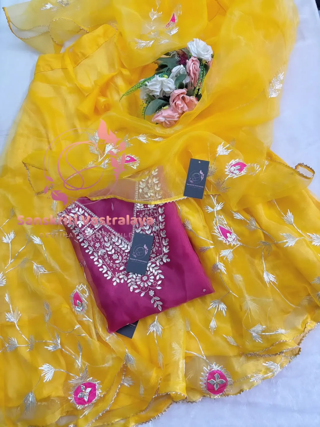 Tissue organza fabric kurta with zardozi handwork