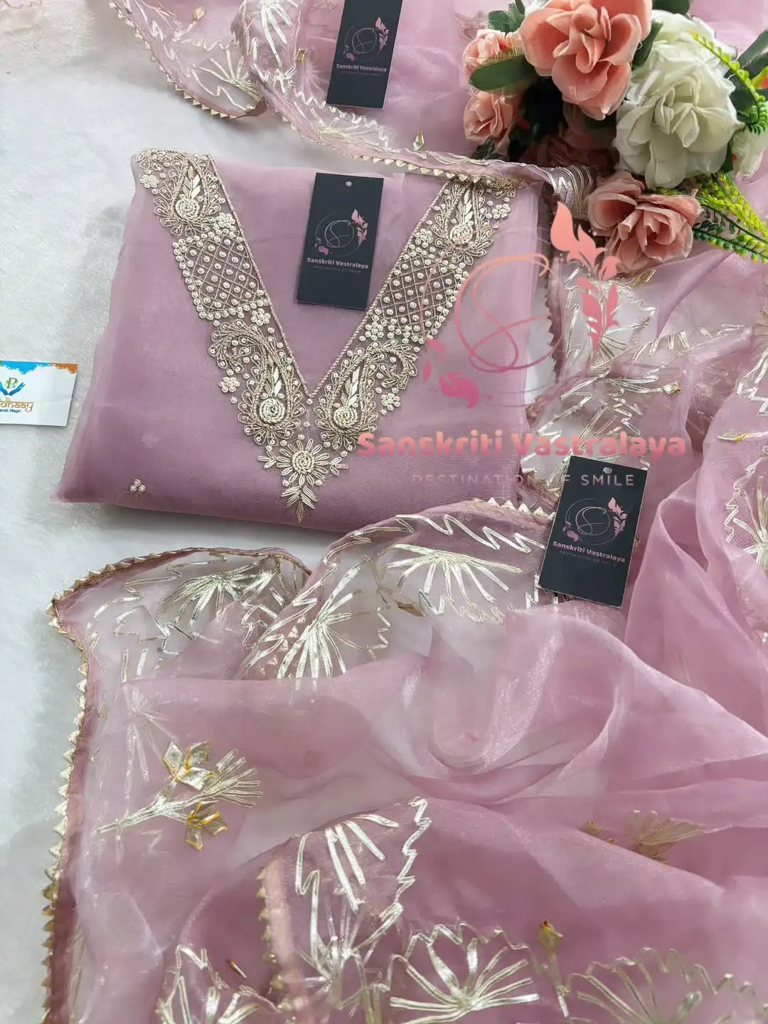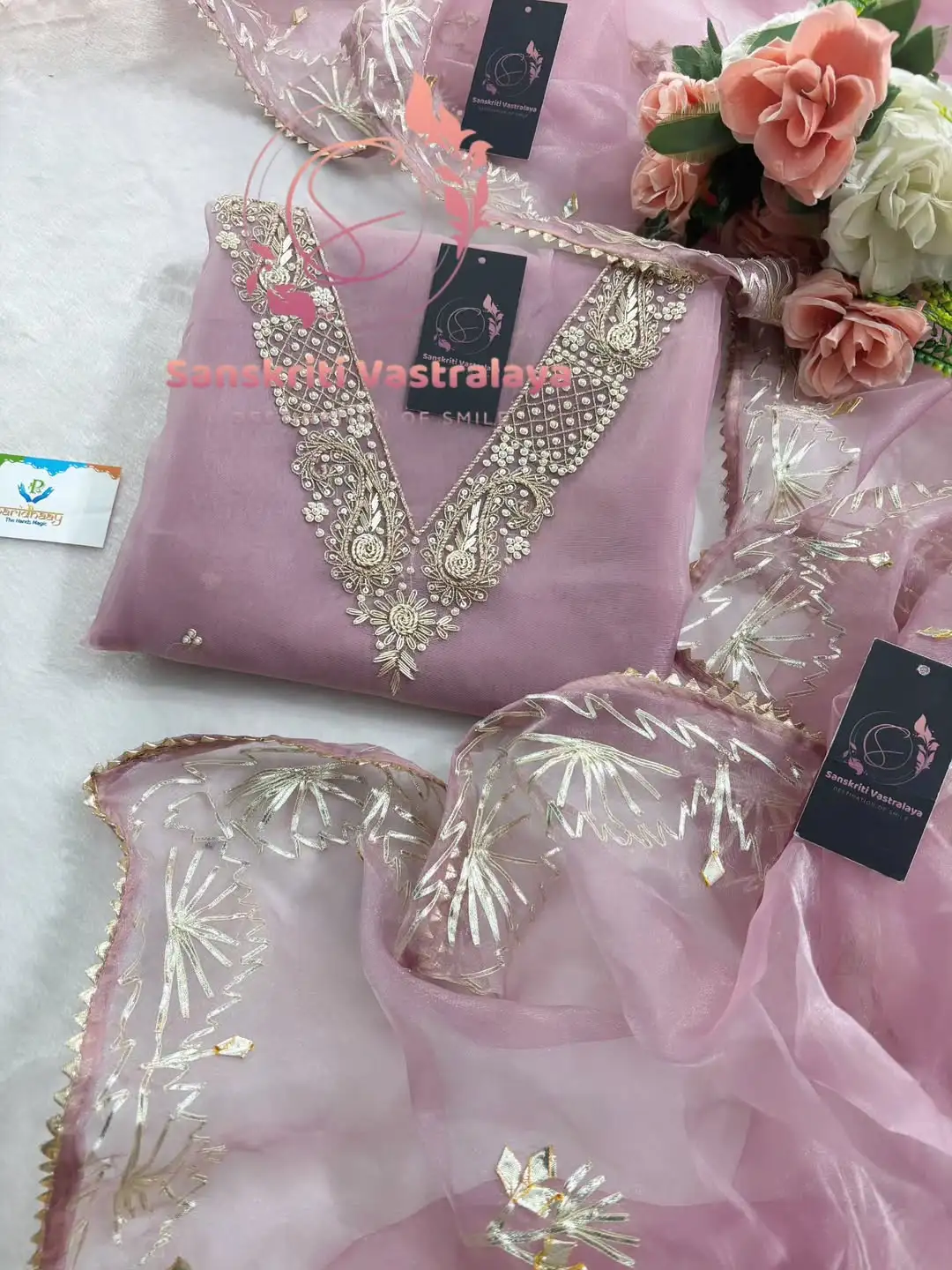 Tissue Organza Fabric Kurta with Zardozi HandworkTissue Organza Fabric Kurta with Zardozi Handwork