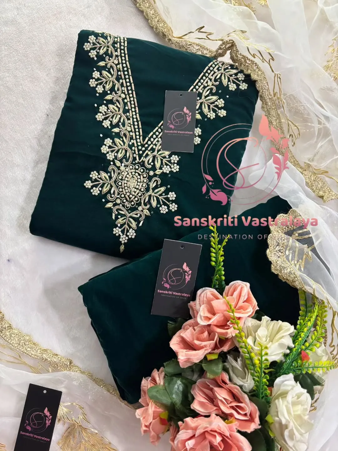 Velvet fabric kurta with zardogi handwork